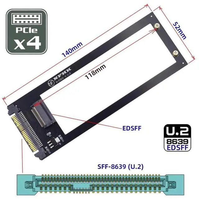 This converter enables the connection of a GEN-Z SSD in E1.S. Fit for 9.5mm & 15mm & 25mm thickness SSD with heat sink.like PM9A3 PM9D3 P5801X)