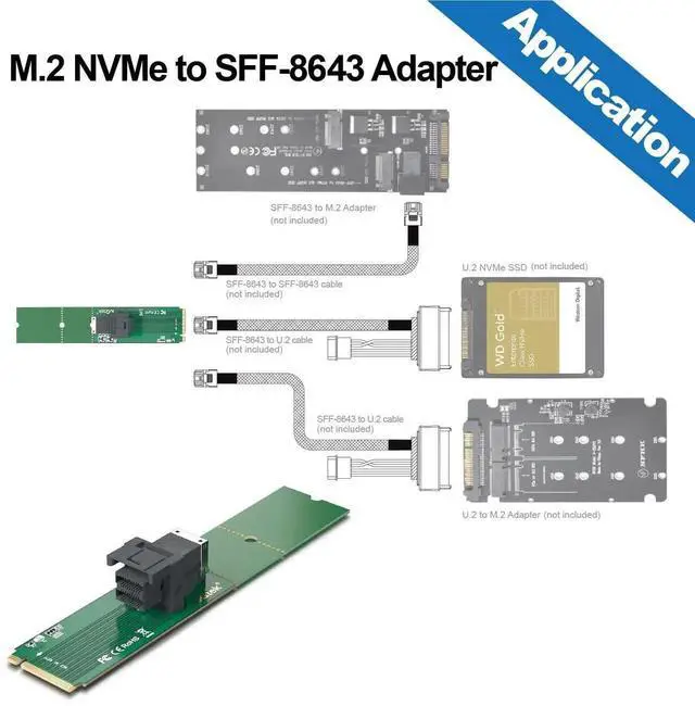 Connect the U.2 (SFF-8639) SSD to a M.2 (M key) slot in a system via a SFF-8643 cable. (wtihout SFF-8643 to U.2 (SFF-8639) Cable). NOT support hot swaping.