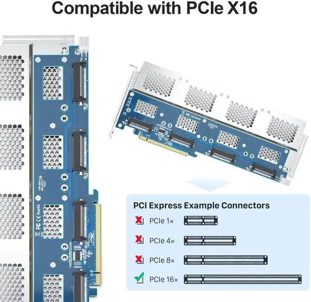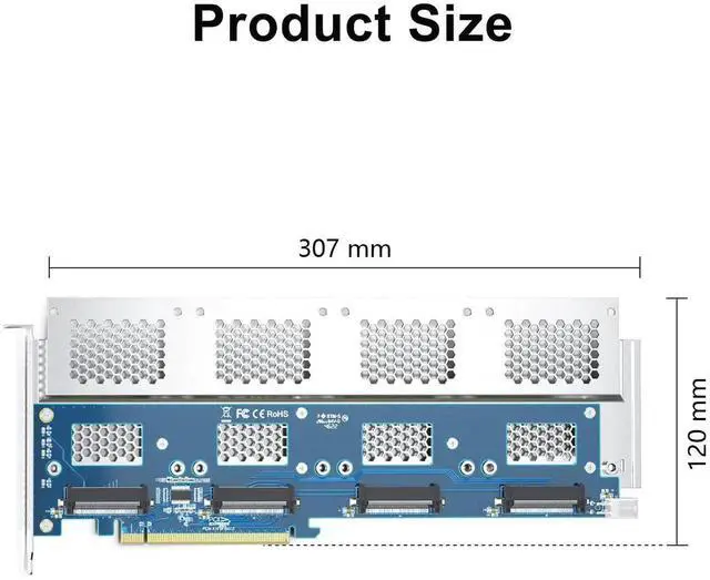 Requires the motherboard PCIe x16 slot to support splitting to x4 + x4 + x4 + x4. If the PCIe x16 slot only supports splitting to x8 + x4 + x4, only three disks can be recognized. If the PCIe x16 slot only supports splitting to x8 + x8, only two disks will be recognized.