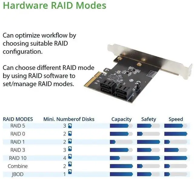 RAID Support: Take advantage of RAID 0, 1, 10, or JBOD (Just a Bunch Of Disks) configurations to enhance data redundancy, increase storage capacity, or boost read/write speeds. This versatility is perfect for both data enthusiasts and professionals.