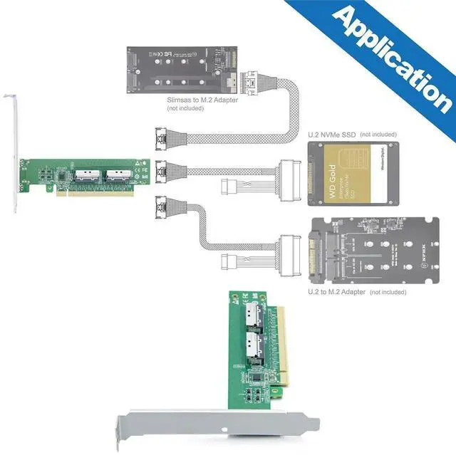 Lane mode needs to match your BIOS setting! This is NOT a PCIe switch. If both CPU & BIOS support bifurcation, this card can support the following applications: 4 Port NVMe SSD; PCIe x4x4x4x4 devices; PCIe x8x8 devices; PCIe x16 devices