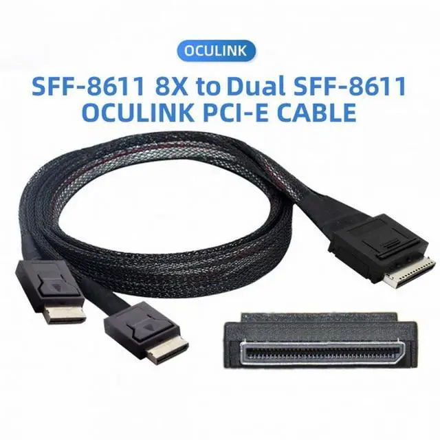 OCuLink SFF-8611 8x 80pin male to dual SFF-8611 4x male