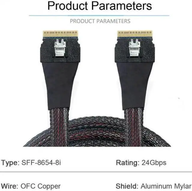 PCI-E Slim Line SAS 4.0 SFF-8654 8i 74pin Host to SFF-8654 Slim SAS Target Cable 50cm