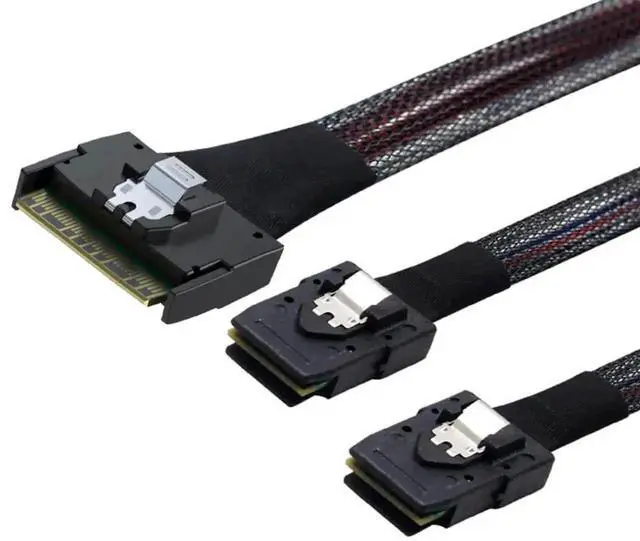 SlimSAS SFF-8654 8i 74P to 2x SAS 8087 \u2013 Provides stable and high-speed internal server connectivity.