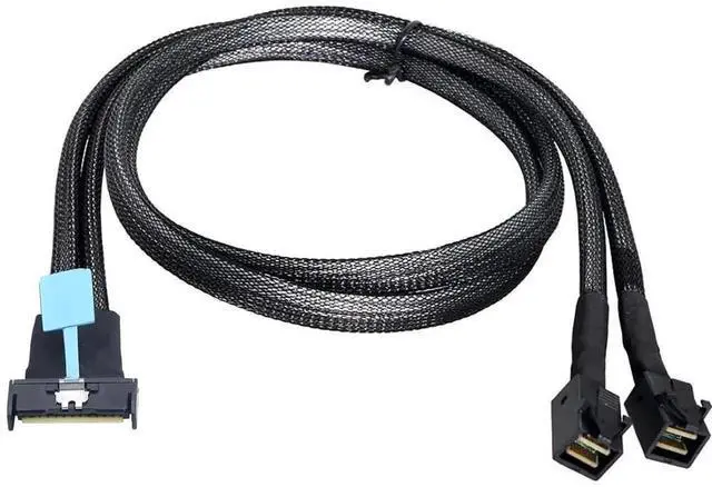 MCIO 8i to Dual SFF-8643 Splitter \u2013 Converts one MCIO 8X 8i port into two Mini SAS HD SFF-8643 ports, providing flexible storage expansion for NVMe or SAS devices.