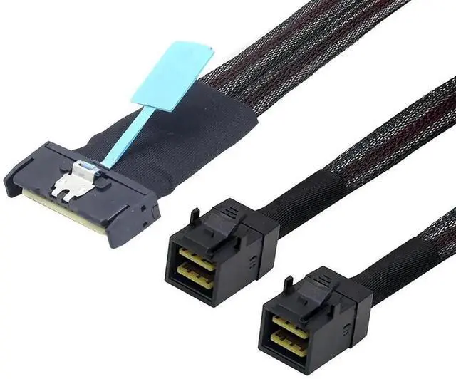 MCIO 8i to Dual SFF-8643 Splitter \u2013 Converts one MCIO 8X 8i port into two Mini SAS HD SFF-8643 ports, providing flexible storage expansion for NVMe or SAS devices.