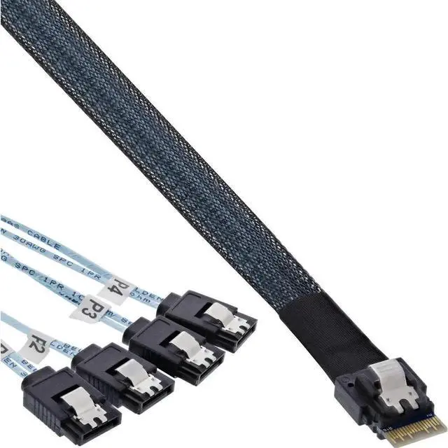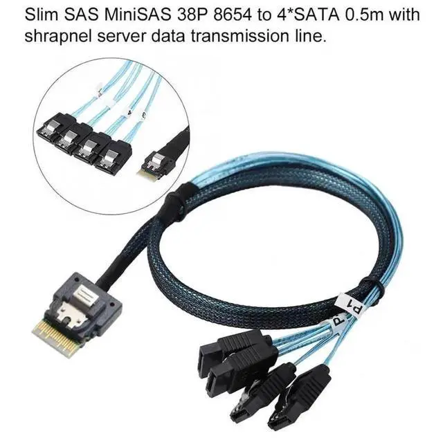 Aomoproing 4.0 SFF-8654 4i 38pin Host to 4 SATA 7pin Target Hard Disk Fanout Raid Cable 50cm