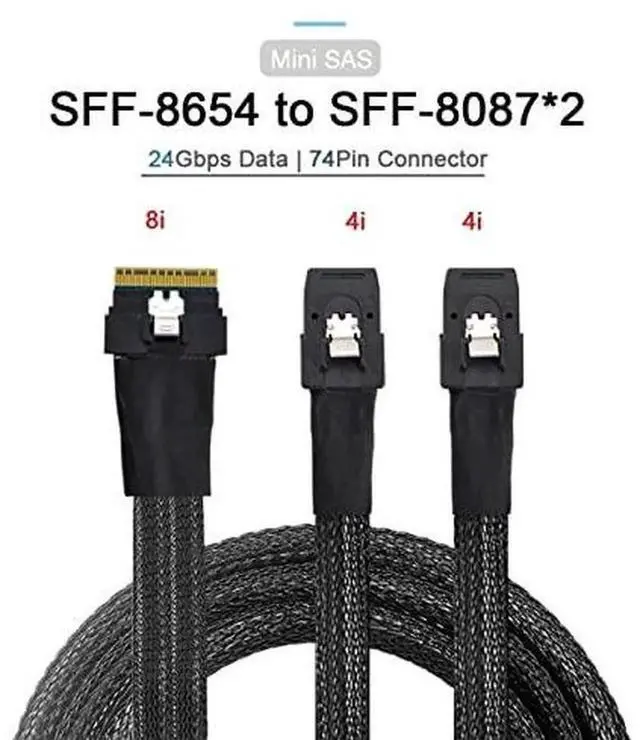 PCI-E Ultraport Slimline SAS Slim 4.0 SFF-8654 8i 74pin to Dual SFF-8087 Mini SAS Cable PCI-Express