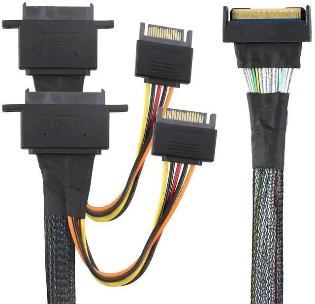 MCIO 8i 74P to Dual SFF-8639 Interface \u2013 Connects PCIe 5.0 controllers to two U.2 drives with integrated 15-pin power delivery.
