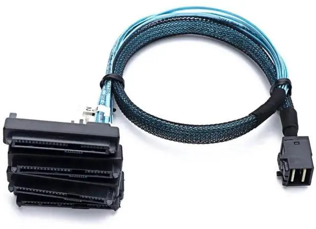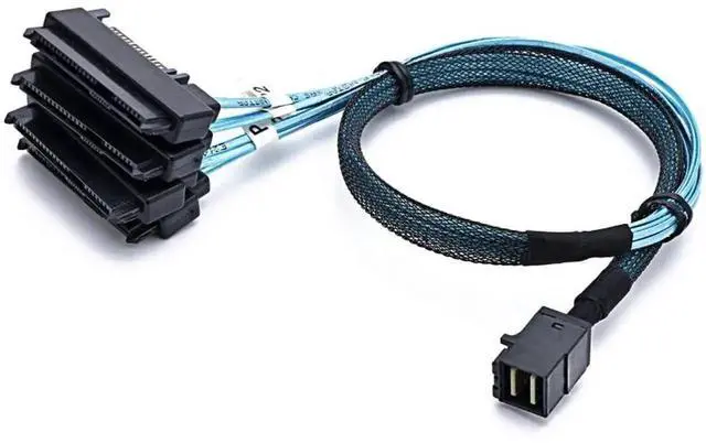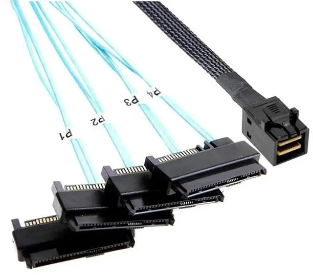 2-in-1 Combination:Mini SAS (SFF-8643) is host, 4 SAS 29 (SFF-8482) is target, internal Mini Serial Attached SCSI x4 (SFF-8643) to (4) x1 (SFF-8482) Serial Attached SCSI (controller based) fan-out cables, simplifying cable management and reducing bulk.