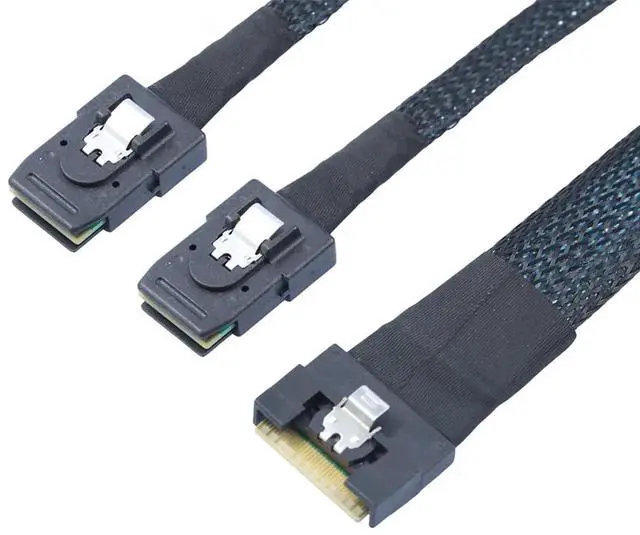 Wide Server Compatibility \u2013 Designed for professional data centers, this cable connects SlimSAS SFF-8654 8i 4.0 to dual SAS SFF-8087 interfaces, supporting various RAID and storage systems.