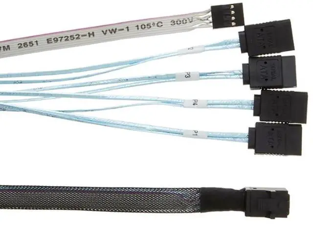 High-Speed Server Cable \u2014 Designed compatible with Mini SAS HD SFF-8643 to 4X SATA 7Pin, supporting high-efficiency data transfer for enterprise servers and RAID storage.