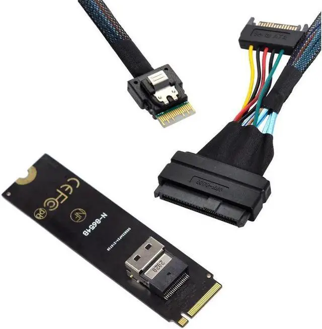 NGFF M-Key NVME to SFF-8654 Slimline SAS Card Adapter and U. 2 U2 SFF-8639 NVME PCIe SSD Cable for Mainboard SSD