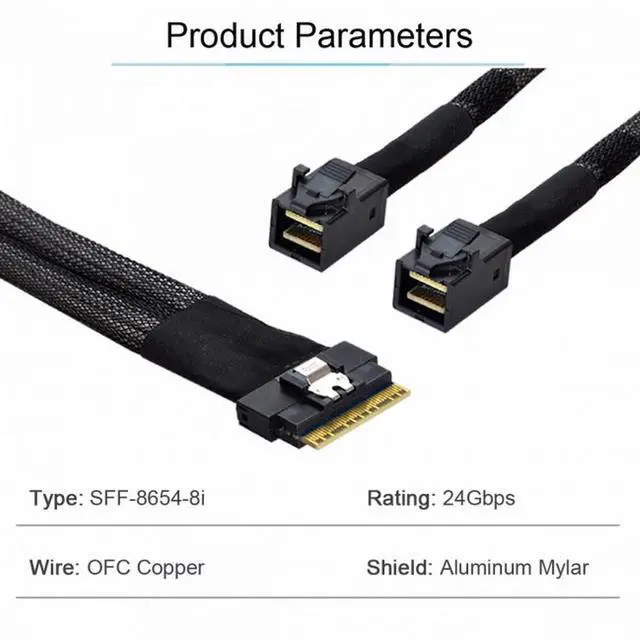 PCI-E Ultraport Slimline SAS Slim 4.0 SFF-8654 8i 74pin to Dual SFF-8643 4i Mini SAS HD Cable PCI-Express