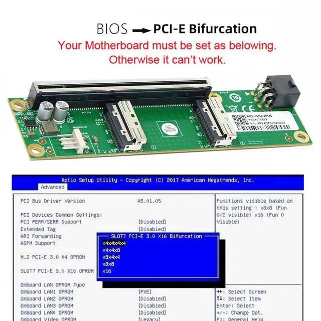 Only supports motherboards with detachable PCI-E channels.Control the operation of two disks based on the motherboard PCIE channel,The motherboard without PCIE signal split can only recognize one disk.