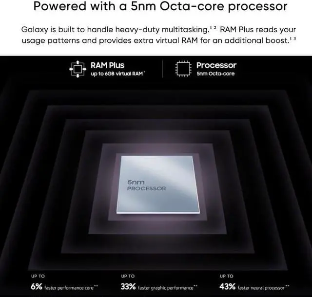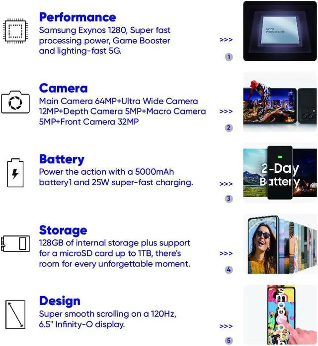5nm Exynos 1280 6.5" 120Hz Super AMOLED Display Li-Po 5000mAh, 25W Fast Charging Camera Group(64MP+12MP+5MP*2) Android 12 SmartPhone Up to 1TB (Micro SD Card) Support Multi-languages