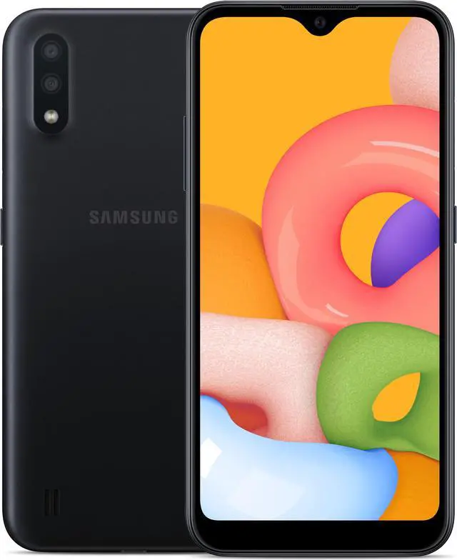 Comes with Single SIM or Dual SIM. It comes with 2GB of RAM and 16GB of flash storage. The Samsung Galaxy A01 (SM-A015U) runs Android 10 and is powered by a 3000mAh battery, weights 149 grams and it's a very thin device, only 8.3 mm.