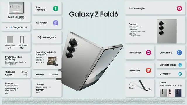 ***Samsung Galaxy Z Fold 6 F9560 5G 7.6" 12/1TB Snapdragon8Gen3 Foldable By FedEx***