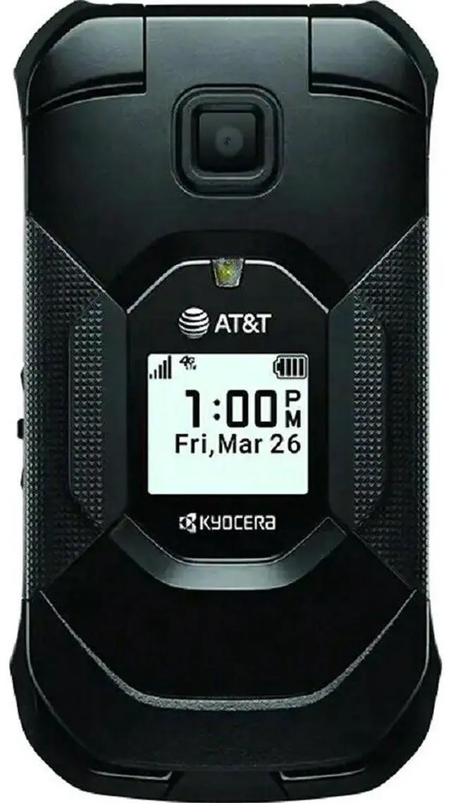 The Kyocera DuraXE Epic E4830 is an ultra-rugged flip phone built to MIL-STD standards and HazLoc rating - designed for reliable field use, loud-speaker voice, and push-to-talk communications. It runs AOSP 10 on a Qualcomm platform with 4G LTE support, a removable battery, an extra-loud speaker, programmable keys and microSD expandability for mission-critical uptime and easy media/file storage. AT&T-branded and GSM UNLOCKED.