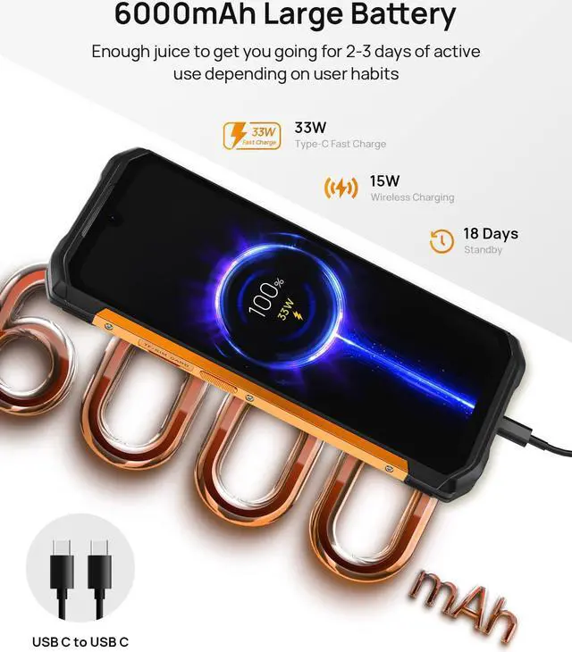 Battery: 6000mAh Large battery 11V/3A, 33W Fast Charge, 15W Wireless charge