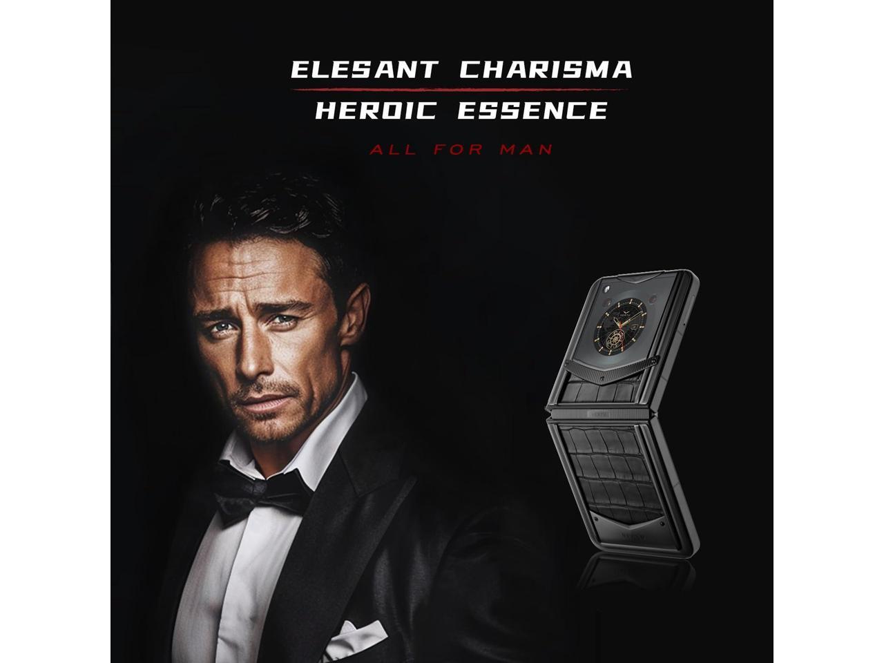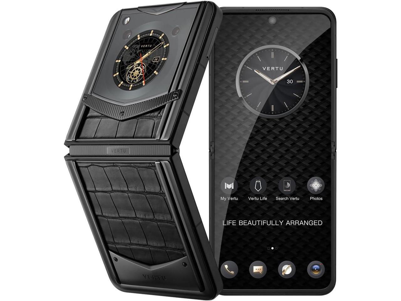 VERTU IRONFLIP Alligator Skin Flip Cell Phone, Unlocked Android 5G Smartphone, Foldable Design, One-Hand Control, 50MP Camera, 12G+512G, Dual SIM, 6.9" 120Hz OLED, 65W Fast Charge (Basalt Black)