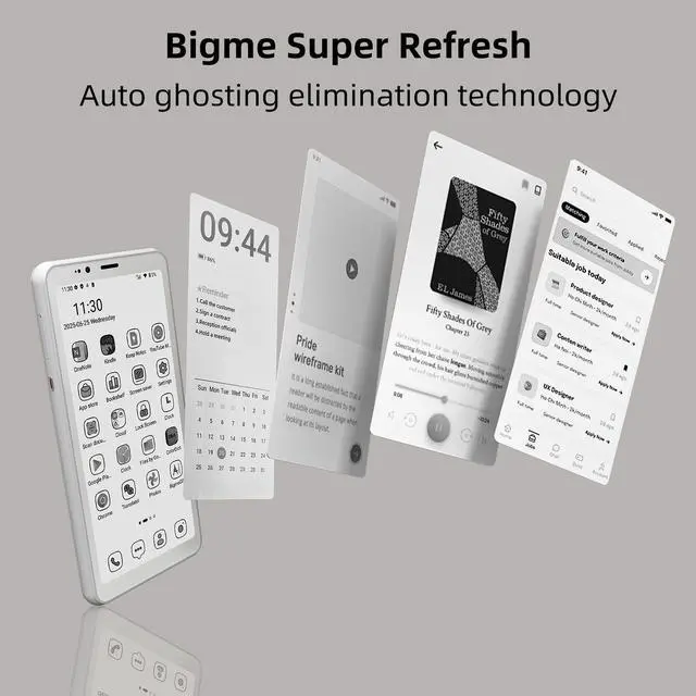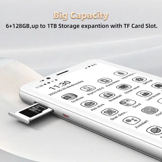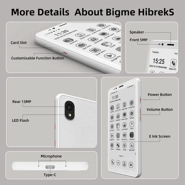 The Bigme HiBreakS E-Paper Smartphone combines smart performance with an eye-friendly display, designed for users who value clarity, efficiency, and long battery life. Featuring a 5.84-inch black and white e-paper screen, it offers an exceptional reading and browsing experience that reduces glare and eye strain. Powered by an octa-core processor and equipped with Android 14, this device ensures smooth multitasking and wide app compatibility. With 6GB of RAM and 128GB of internal storage, expandable up to 1TB via TF card, you can easily save your reading materials, photos, and documents. Its 3300mAh battery supports extended use, making it ideal for work, study, or leisure on the go. Dual cameras enhance photo capturing and video calling convenience, while 4G connectivity keeps you seamlessly connected wherever you are. Sleek and minimalist in design, the white Bigme HiBreakS E-Paper Smartphone delivers both performance and practicality in one lightweight package, offering a refreshing alternative for digital readers and multitaskers.