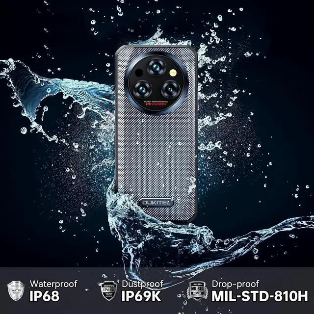 64MP+32MP CamerasThe OUKITEL WP35 Pro 5G waterproof smartphone boasts a 64MP Sony main camera, capable of capturing sharp photos and videos in any scenario. An 8MP IR night vision camera ensures clear imaging in complete darkness, with fast autofocus for quick shots. It carries IP68/IP69K waterproof and dustproof certifications, as well as MIL-STD-810H military-grade durability, supporting: 1.5 -meter water immersion for 30 minutes; 1.5 -meter drop resistance; and 360° full protection against dust. Designed for construction workers, engineers, and outdoor enthusiasts.