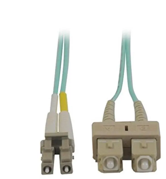 Tripp Lite introduces it's new OM3 Laser-Optimized Multimode Fiber (LOMMF) "Aqua" cables, for use with 10Gb Ethernet applications. These new technology, 50/125um, SC/LC Fiber Optic cables, provide nearly three times the bandwidth over conventional 62.5 um multimode fiber, with performance rivaling that of Singlemode cable, at a much reduced cost. LOMMF cable allows 10Gb serial transmission over extended distances in the 850nm wavelength window, where low-cost Vertical Cavity Surface Emitting Lasers (VCSELs) enable a cost-effective, high-bandwidth solution. LOMMF is ideally suited for LAN's, SAN's, and high-speed parallel interconnects for head-ends, central offices, and data centers.