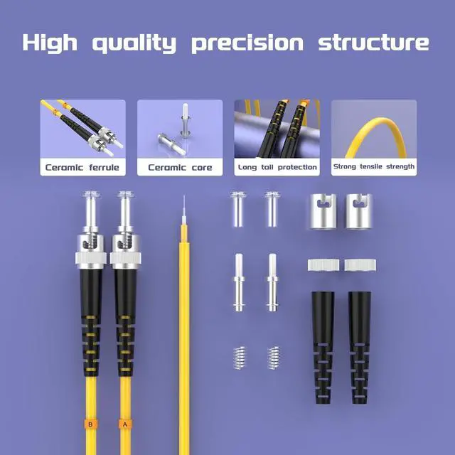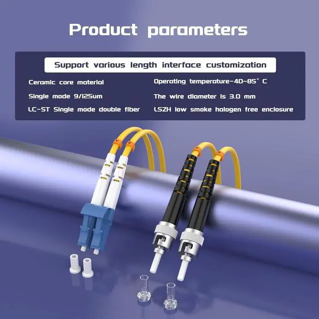 This 25Meters LC/UPC to ST/UPC singlemode OS2 fiber cable has an yellow color jacket with a 3.0mm diameter.It is flexiable and allowes a minimum installation bending radius of 5.0cm and a minimum long term bending radius of 3 cm.