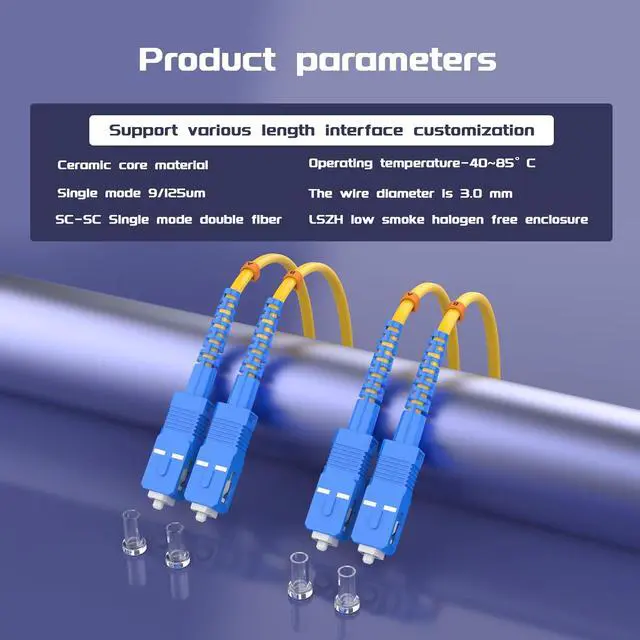 This 25Meters SC/UPC to SC/UPC singlemode OS2 fiber cable has an yellow color jacket with a 3.0mm diameter.It is flexiable and allowes a minimum installation bending radius of 5.0cm and a minimum long term bending radius of 3 cm.