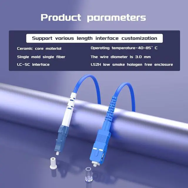 The Low-Smoke, Zero Halogen (LSZH) jacket ensures a small optical loss and stable transmission with its high-rated 50/125um fiber and cladding, which are insensitive to bending, easy to peel and weld, and have a minimum bend radius of 7.5mm.