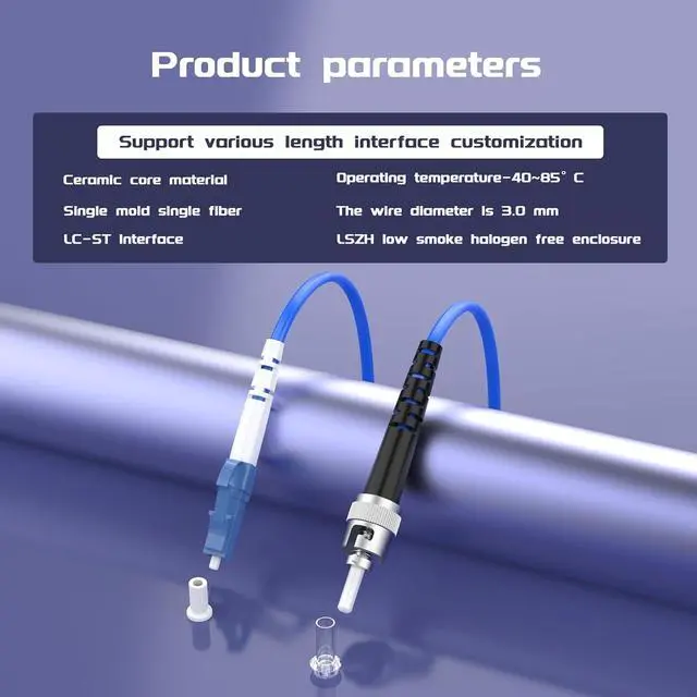 The Low-Smoke, Zero Halogen (LSZH) jacket ensures a small optical loss and stable transmission with its high-rated 50/125um fiber and cladding, which are insensitive to bending, easy to peel and weld, and have a minimum bend radius of 7.5mm.
