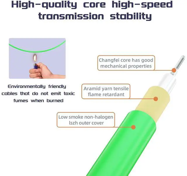 The fiber optic jumper is made of Low smoke halogen free LSZH material. 7.5mm Minimum Bend Radius - High Rated 50/125um Fiber and Cladding, which is Insensitive to bending, easy peeling, easy welding, ensures small optical loss and stable transmission.