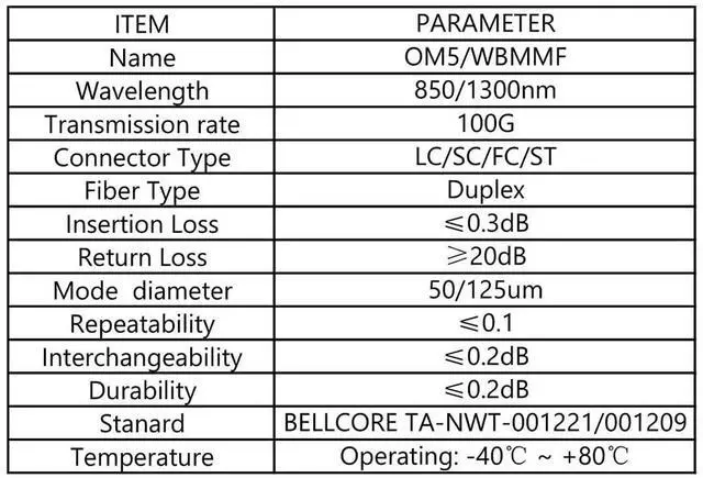 OM5 LC-LC Fiber Optic Patch Cable Multimode 10Gb is designed for high density applications in giga-bit ethernet, fiber channel, local area networks, data center, premise installation, wide area networks, commercial and so on, ideal for connecting 10G SR, 10G LRM, SFP+ transceivers etc. for 10G/40G/100G Ethernet connections and is the preferred fiber specification for 10G Ethernet connections.