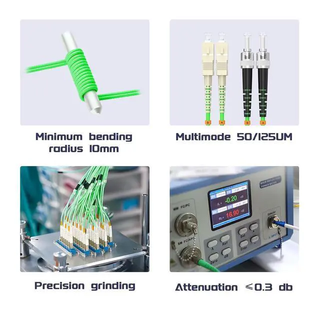The OM5 fiber optic jumper adopts the material formula and forming process technology of nano zirconia powder injection molding, featuring a high return loss of e 50dB, low insertion loss of d" 0.3dB, and low attenuation characteristics to provide precise alignment for ensuring signal integrity.