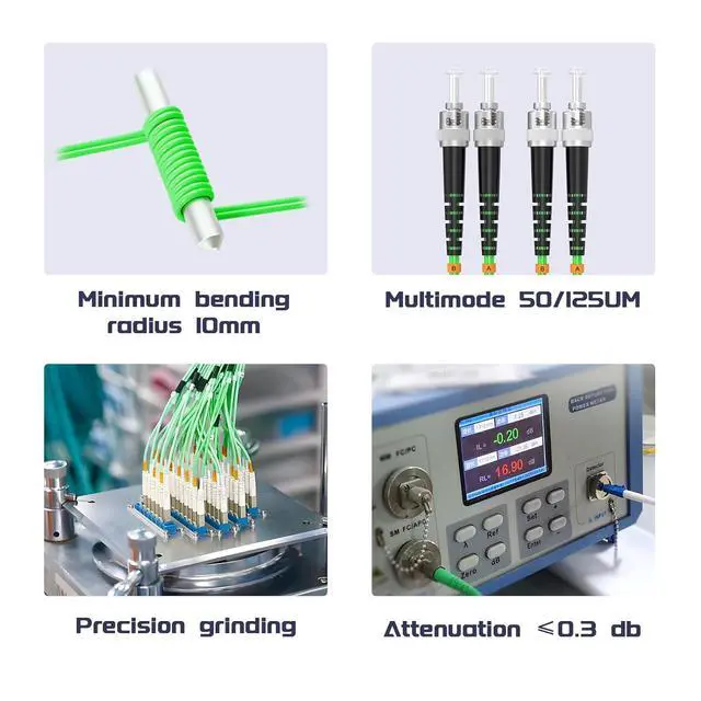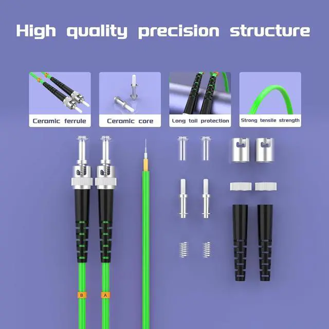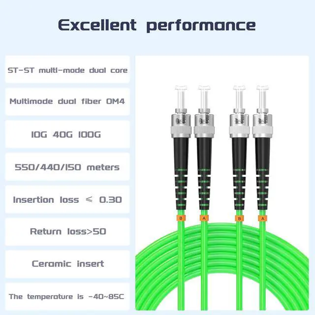 OM5 Fiber Patch Cable ST to ST UPC 10Meters/32ft 40Gb/100GB/giga-bit multimode Duplex Jumper MMF 50/125?m LSZH Fiber Optic Cord