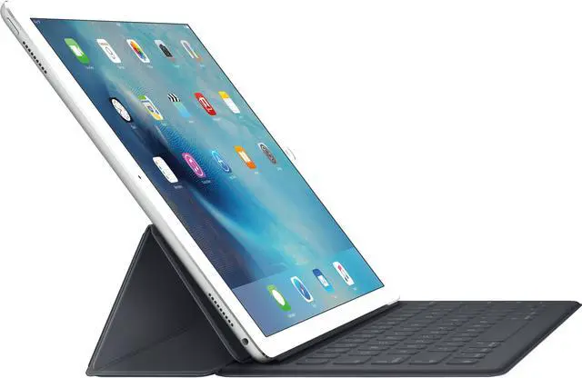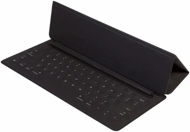 The Smart Keyboard for iPad Pro is the perfect blend of full-size utility and outstanding portability. Specially constructed, the keyboard is a surprisingly thin and lightweight yet provides the accuracy, stability, and satisfying key feel of a traditional keyboard. But, unlike traditional keyboards, there are no gaps between keys. The keyboard is also coated in a water and stain resistant finish, so the Smart Keyboard is resistant to stains and spilling. Easy to use, travel-readyWhen you need it, simply unfold the Smart Keyboard and it's ready for use. When you don't, fold it up and it doubles as a slim, lightweight cover for your iPad Pro. Durable, intelligent designWhat sets this keyboard apart is its triple-layer construction. The top layer is made of durable polyurethane. The bottom layer is a soft microfiber lining that provides screen protection and keeps it clean when the Smart Keyboard is folded. The middle layer is composed of a conductive fabric material. When combined with the Smart Connectors on the connecting edge of the Smart Keyboard and the side of the iPad Pro, this conductive fabric ensures seamless communication between the iPad and keyboard. No plugs, pairing, charging or switches requiredTogether, the Smart Connectors and conductive fabric inside the smart keyboard allow for a two-way exchange of power and data. Result: no plugs, switches or pairing required. iPad not included