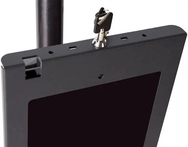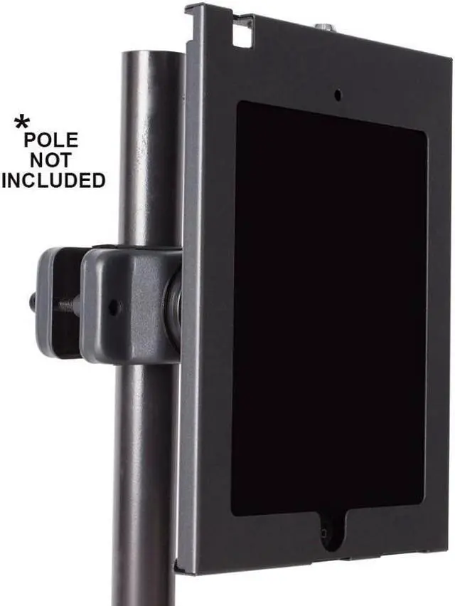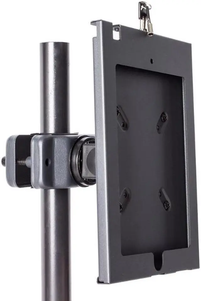 Use this MonMount Pole Mounting Bracket to mount your iPad or tablet for easy accessibility. The iPad can be mounted in horizontal or vertical positions. Use the locking keys to secure tablet in the mount. iPad can be titled and rotated easily for different viewing angles. The bracket also features monitor mounting holes VESA 75 and
