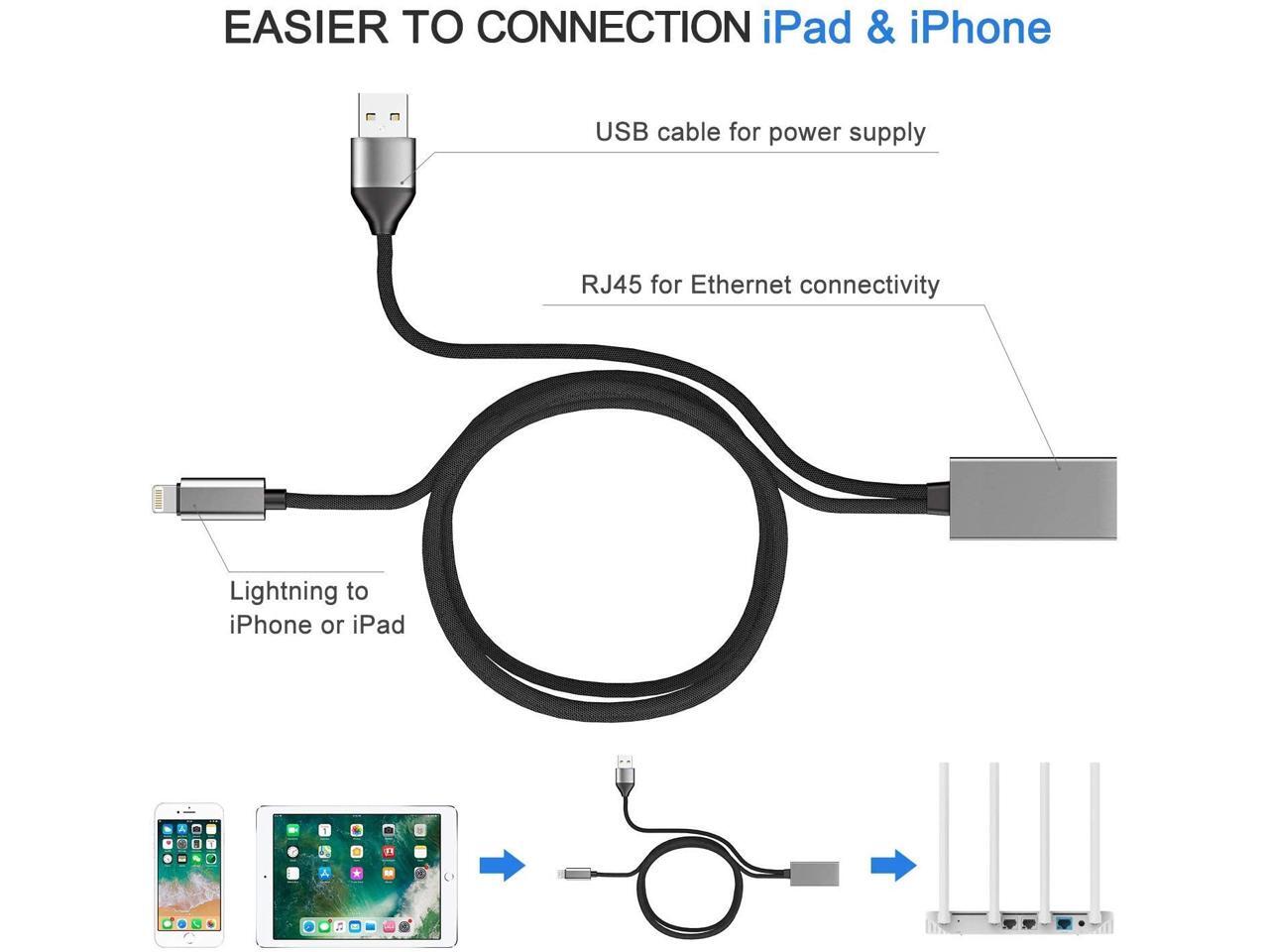iPhone iPad Ethernet Adapter, Lightning to LAN RJ45 Port, Wired Network for Apple iOS