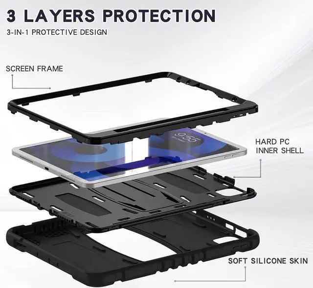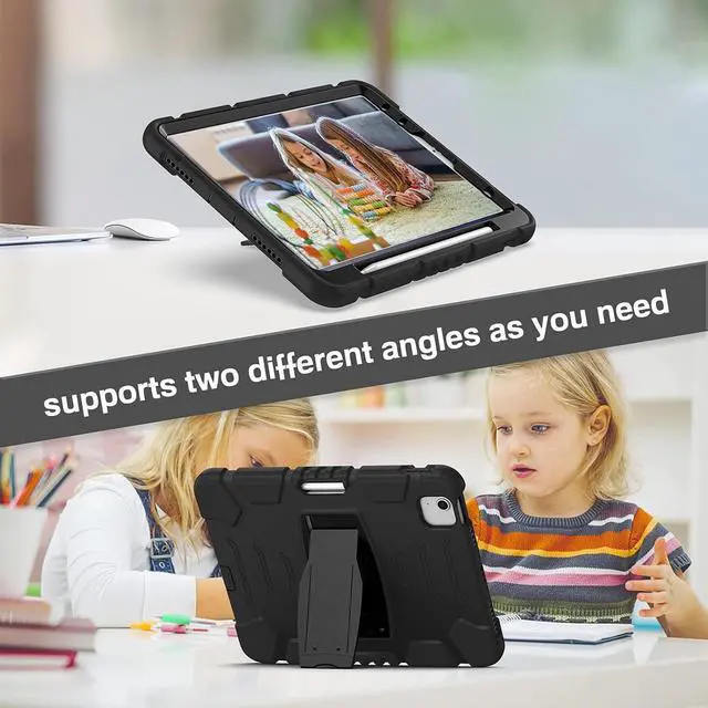 [Built-in three-layer protection] Advanced 3-in-1 structure, using high-quality PC and shock-absorbing silicone materials, provides comprehensive protection for your tablet, effectively preventing it from accidental fall, vibration, sliding and scratches. Don't worry about your iPad slipping from your child's hand and breaking.