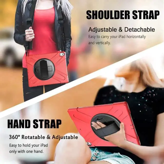 Flexible Nylon Shoulder Strap: By attaching strap to any two corners and adjusting to a comfortable length, your tablet can be carried vertically or horizontally in a more secure way during hiking, traveling or other outdoor activities. Also, strap allows you to hang up your tablet behind car seat for iPad entertainment for kids.