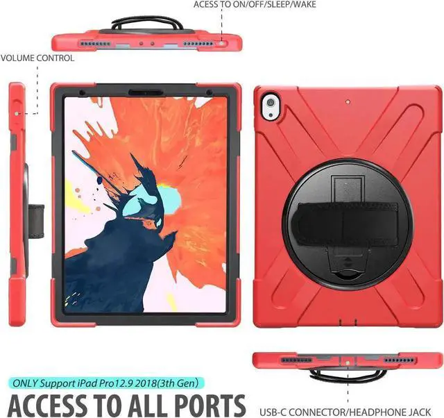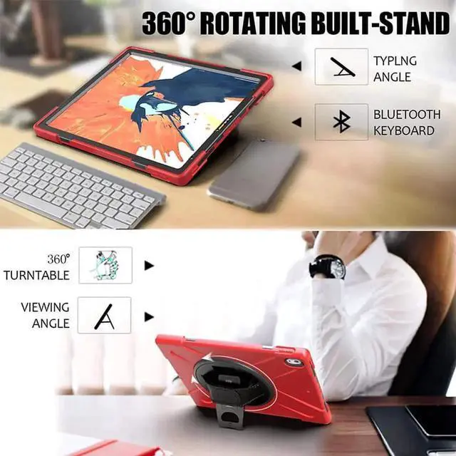 Versatility: Located on the back of iPad Pro 12.9 heavy duty case, built-in 360 degree rotating kickstand and adjustable handle hand grip provide a more flexible and convenient way to use your tablet during work, study or journey, ideal for students, teachers, engineers.