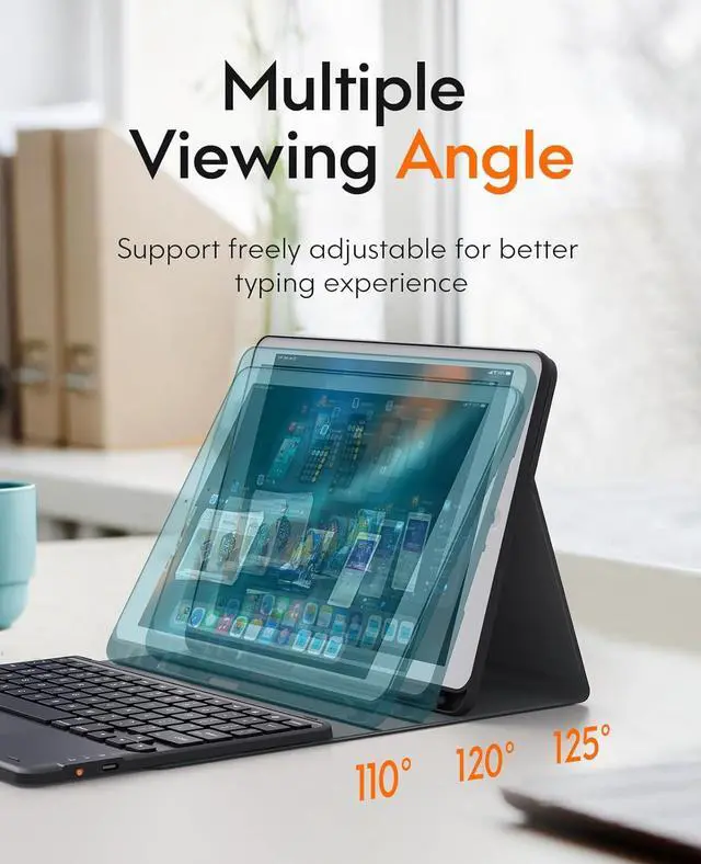 MULTI-TOUCH TRACKPAD- This keyboard case for iPad 10.2 has an integrated multi-touch trackpad that perfectly adapts to the IOS system, with various trackpad gestures, providing a comfortable usage experience while clicking, scrolling, and swiping through content effortlessly. Allows you to turn your 10.2 / 10.5 inch iPad into a real laptop and is very convenient for your typing, watching, working, and carrying without a mouse needed.