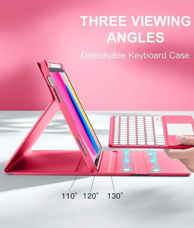 Magnetically Detachable KeyboardThe iPad 10th gen keyboard is magnetic and it can be strongly attached to the case or detach completely. When you do not need the keyboard can be stored away, easy to carry the iPad on the go. It is easy, fast and stable to connect via BT, reconnect immediately turning it on