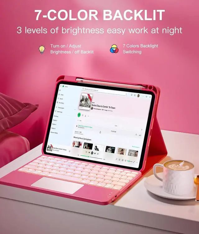 Illuminated TypingHarvopu 10th gen iPad case with keyboard with a full row of the laptop-like iPadOS shortcuts is customized for your tablet, and allow you easily switch between adjusble 7 RGB pure backlit with 3 levels adjustable brightness, engaging yourself in a free and relaxed typing experience in any dim condition