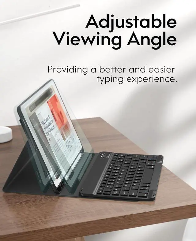 MULTIPLE ANGLES & 360 DROP PROTECTION3 anti-slip stand angle easily adjusts to whatever comfortable position and media viewing suits you best - giving you amazing versatility. Premium leather cover and soft microfiber-lined interior provide full protection. Solid construction, no bulky.