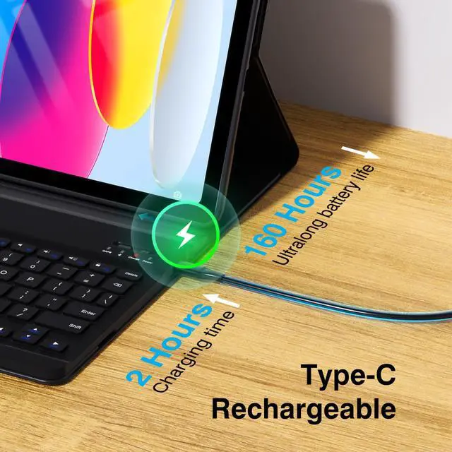 The keyboard case for iPad has three adjustable angles, which can be easily adjusted to a comfortable angle for a pleasant using experience.