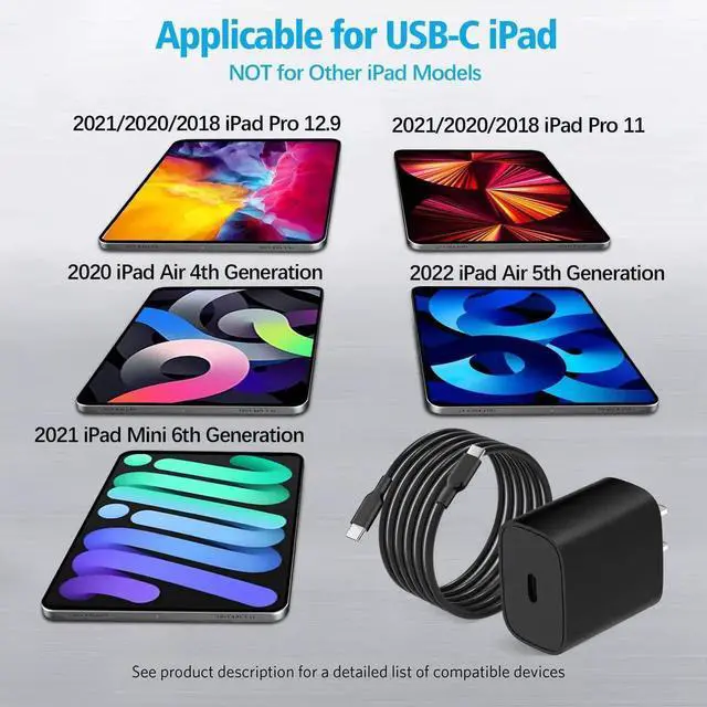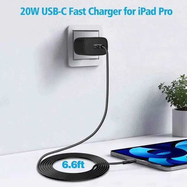 JAENFONG iPad Pro 12.9/11 inch/4th Gen Air/6th Gen Mini Charger, 20W USB C Fast Charger with 6.6ft USB C to C Cable, Charge Up to 3x Faster