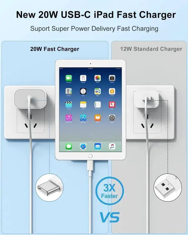 The 20W iPad Fast UCharger provides Rapid charge iPad up to 50% in 0.5 Hour, 3X faster than standard charger.