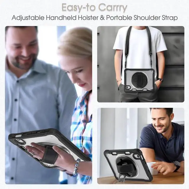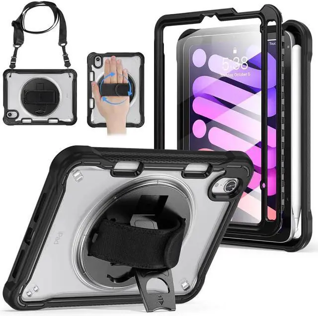 BRAECNstock Case for iPad mini 7 (A17 pro) 2024/ Mini 6 8.3", Shockproof Protective Cover with Pencil Holder, Screen Protector, 360° Rotating Hand Strap/Stand for iPad mini 7th/ 6th Generation, Black